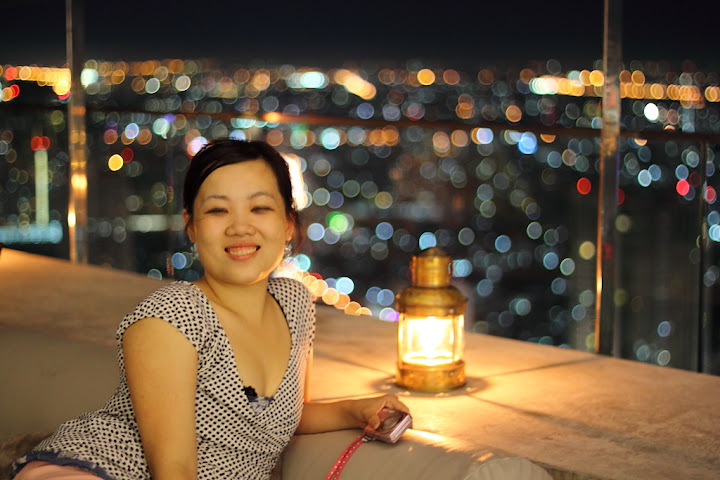 (APSC f/1.8, 50mm, 1/8s, 大光圈讓背景城市燈火呈失焦模糊圓,好吧,其實這張對焦點稍微前移了點,手持又稍有晃動,美女又閉上了眼睛,不過我很少使用大光圈,選擇較少,這張中選的原因就是有美女)
